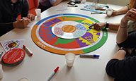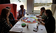 ● Paula had twee dobbelstenen bedacht: een positief/negatief-dobbelsteen en een thema-dobbelsteen. De thema-dobbelsteen was niet zo duidelijk en het wordt best ingewikkeld als er naast een karakter, een waarde en een activiteit ook nog een thema is. Positief/negatief zou wel goed werken, dan geeft meer richting aan de discussie.