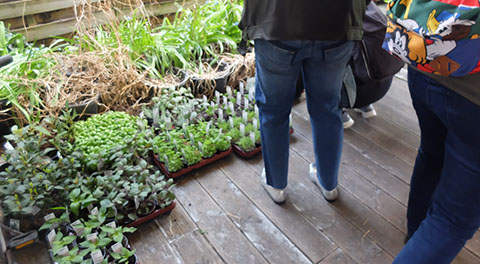 behalve dat de tuin wel toegankelijk is. Daar is het geen park, maar een moestuin. In bakken worden verschillende groenten verbouwd. De bewoners kweken zelf hun groenten, en door middel van deze moestuin komen ze ook met elkaar in contact. Cascoland heeft ook ooit een mobiele moestuin bedacht: een aanhanger waar potten in konden staan, en ik geloof dat er nog meer verschillende functies waren. Er waren ook tafels en banken die ernaast konden worden gezet.