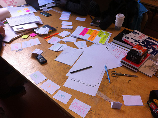 Paula had een idee voor een rollenspel: het spel is een manier om je in te leven in een andere partij die bij het Corbiongebied betrokken is. Vanuit een rol die je toebedeeld krijgt denk je na over de waarden van het gebied. Faddia en Saúl waren al bezig met het ontwerpen van een tool voor de gemeente om bewoners te betrekken bij de plannen. Deze week besloten we met z'n vieren te gaan samenwerken (zie ook: vraagstelling rollenspel). Faddia, Saúl en ik bouwden verder aan het idee van een rollenspel. We hebben het getest door het samen te spelen. Het verbaasde me niet dat we tegen verschillende dilemma's aanliepen. Is elke rol actief bij alle fases? (We hadden bedacht dat er verschillende fases in het spel waren.) Of mag in de beslisfase alleen de gemeente besluiten nemen? Hoelang duurt zo'n fase? Wat is de opbrengst van het spel? Het spel kan dus nog veel kanten op gaan.