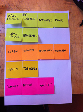 In ons spel maken we gebruik van karakters omdat we ambtenaren niet alleen willen uitnodigen om op een andere manier te denken, ook om de denkwijzen, waarden en belangen te kunnen koppelen aan personen. Sommige karakters zijn ook duidelijk mensen die betrokken zouden kunnen zijn bij het Corbiongebied; sowieso de gemeente en de aannemer (de eigenaar van het gebied is Corbion). Het is een verschil of je vanuit de feiten of vanuit een aannemer moet kijken naar een bepaald probleem. Ik denk zelf dat het handig is om karakters te gebruiken die aan de denkhoeden van Bono zijn gekoppeld. Die geven best een volledig beeld van de manieren waarop je een situatie kunt benaderen.